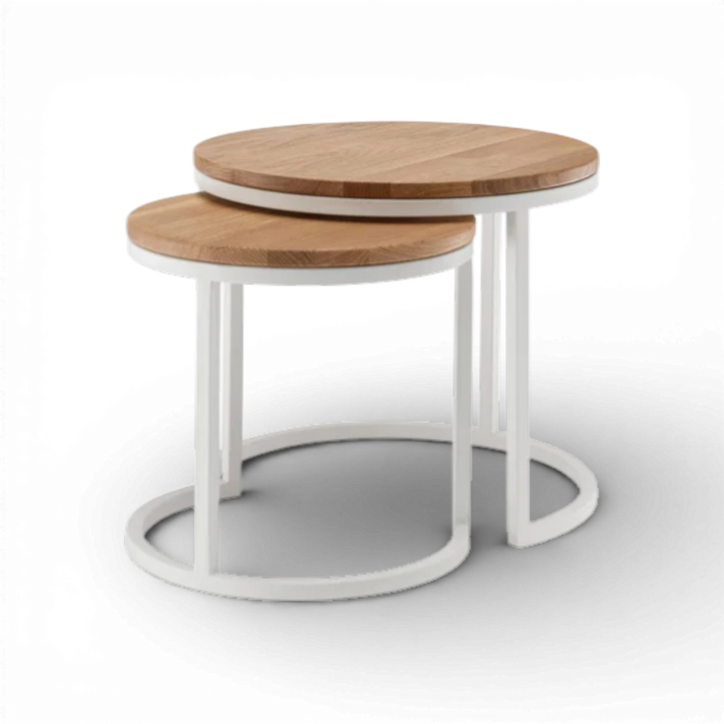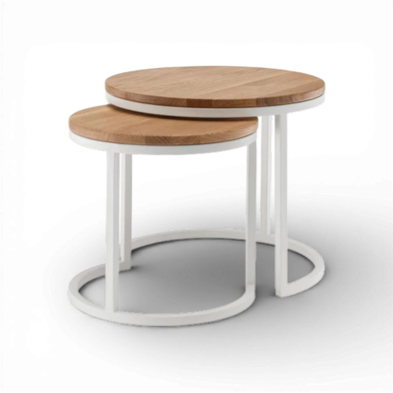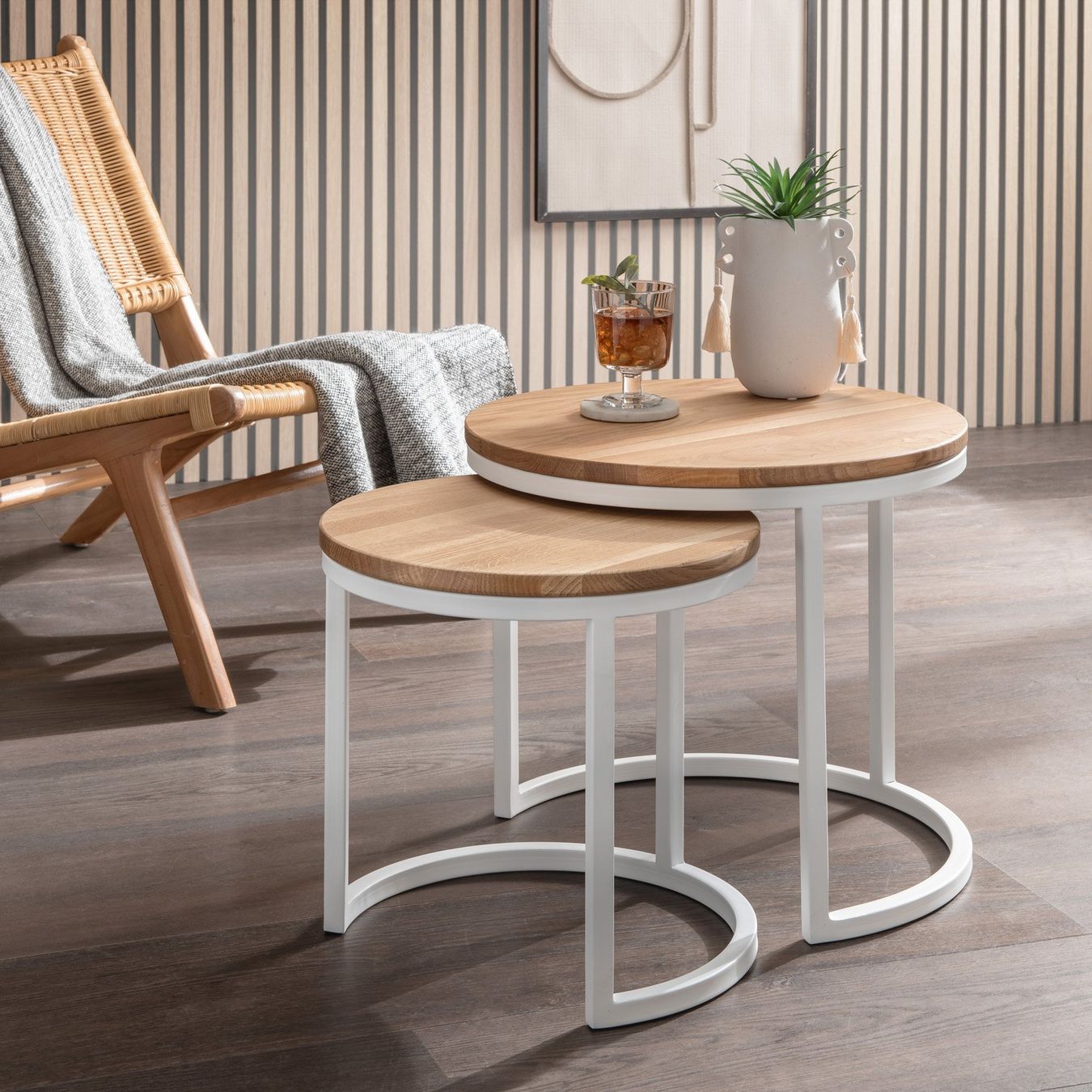 2-Satztisch «Benni», Wildeiche vollmassiv geölt, Gestell Metall weiss.