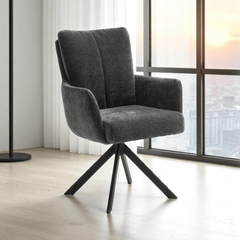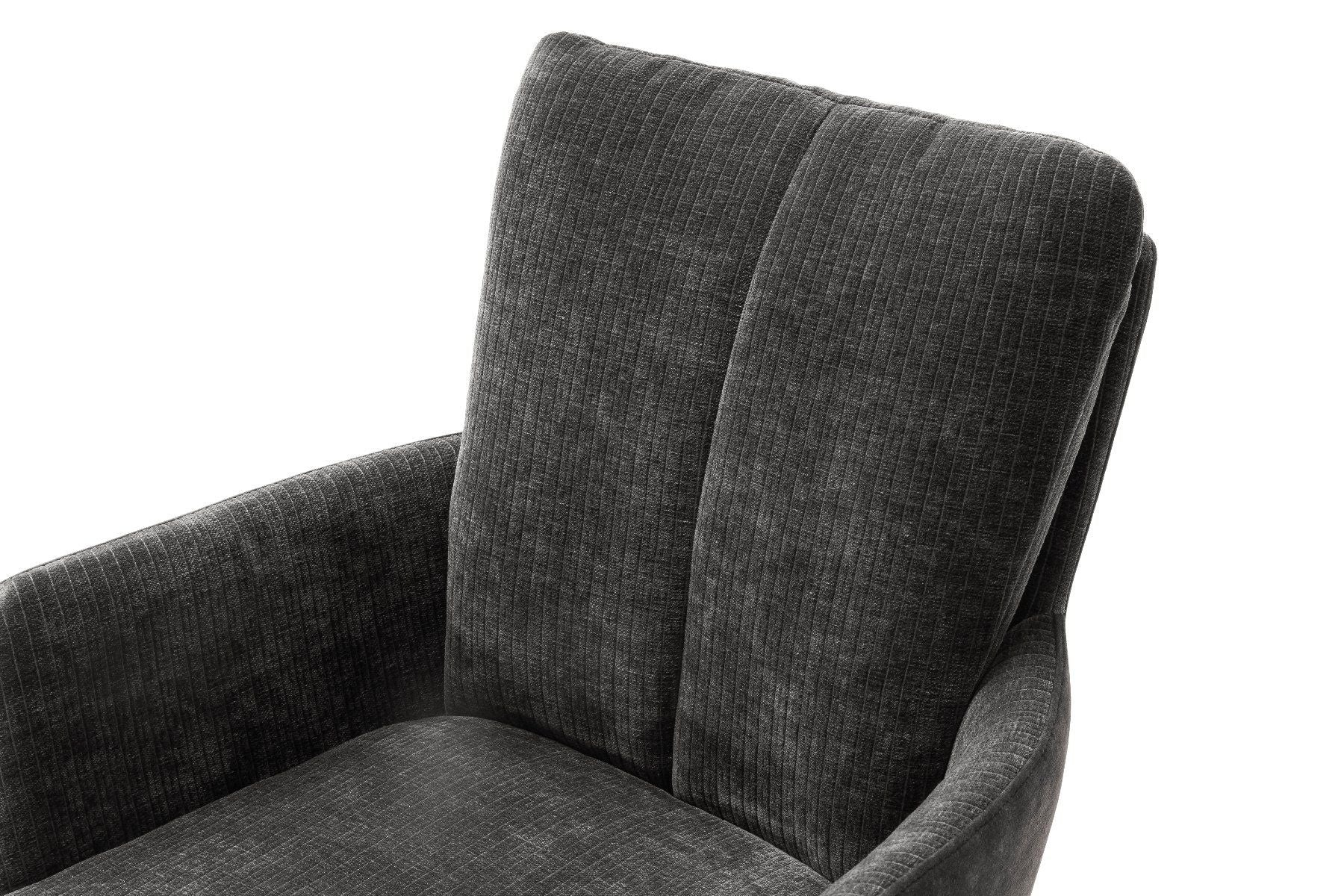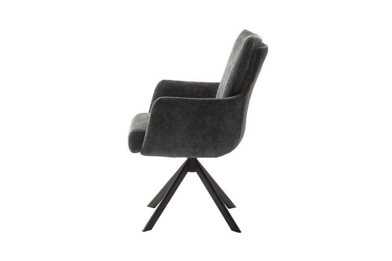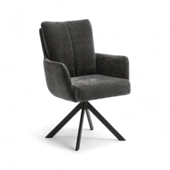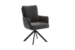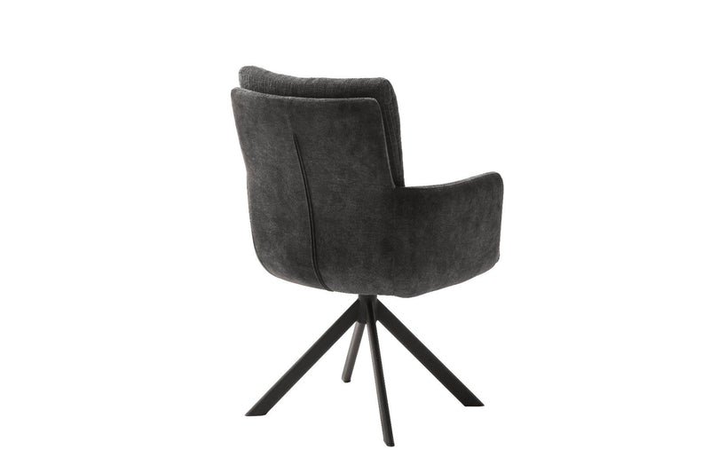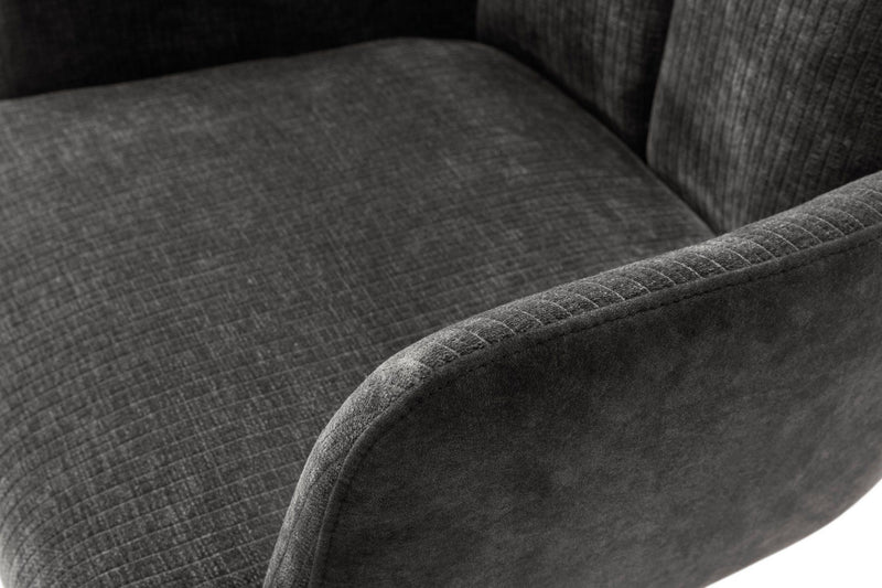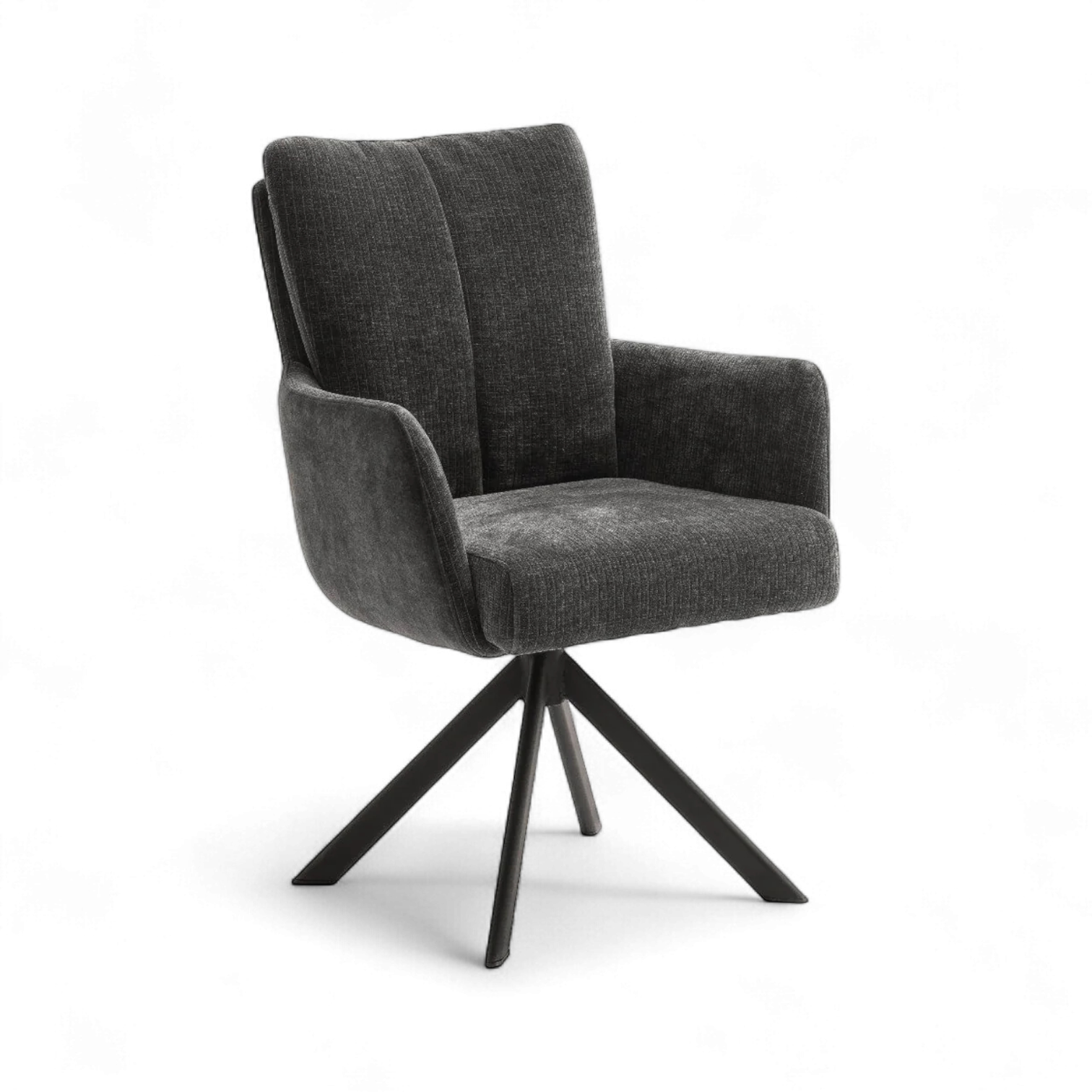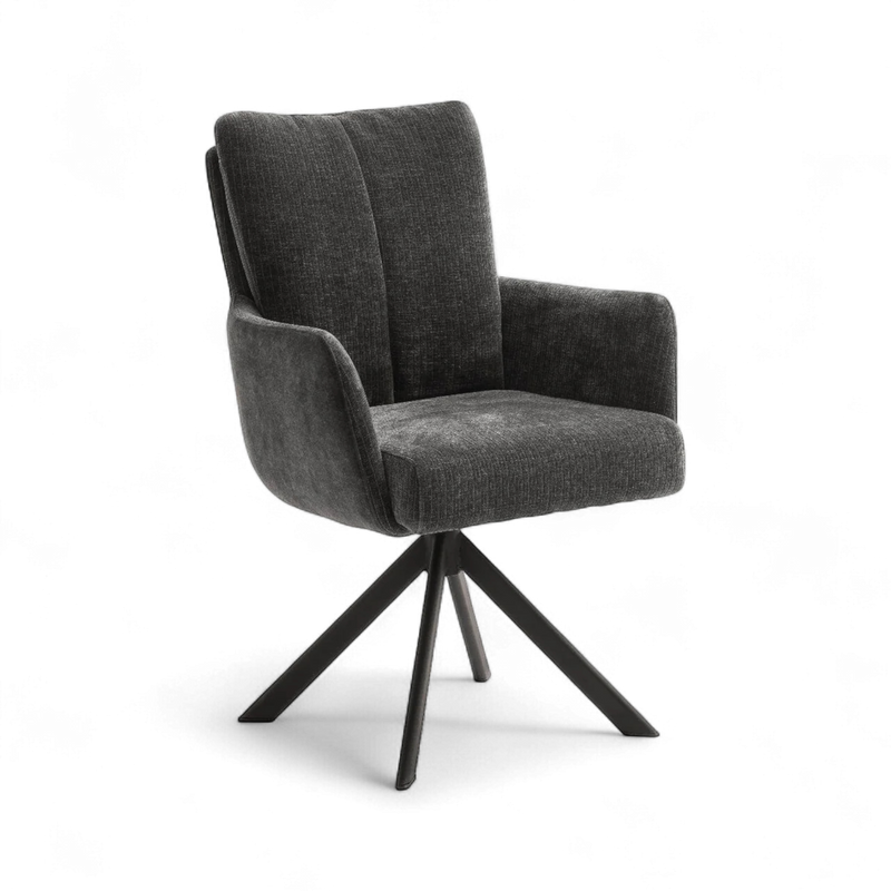 6 Sessel «Malia» Microfaser in Cord-Optik (innen) / Vintage-Veloursoptik (aussen) anthrazit, Füsse schwarz matt. 360° drehbar mit Nivellierung (Rückstellung auf Grundposition). Sehr bequemer, stabiler und trendiger Stuhl mit Taschenfederkern Luxus Komfortsitz, passend zu den aktuellen Tischmodellen.