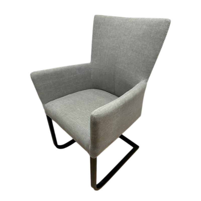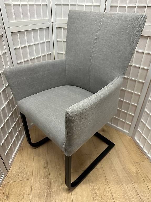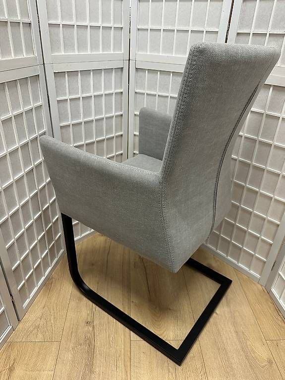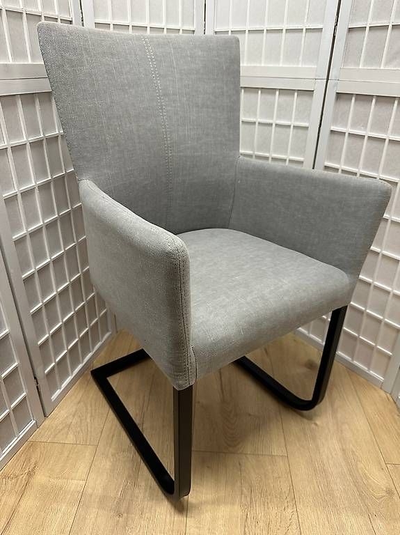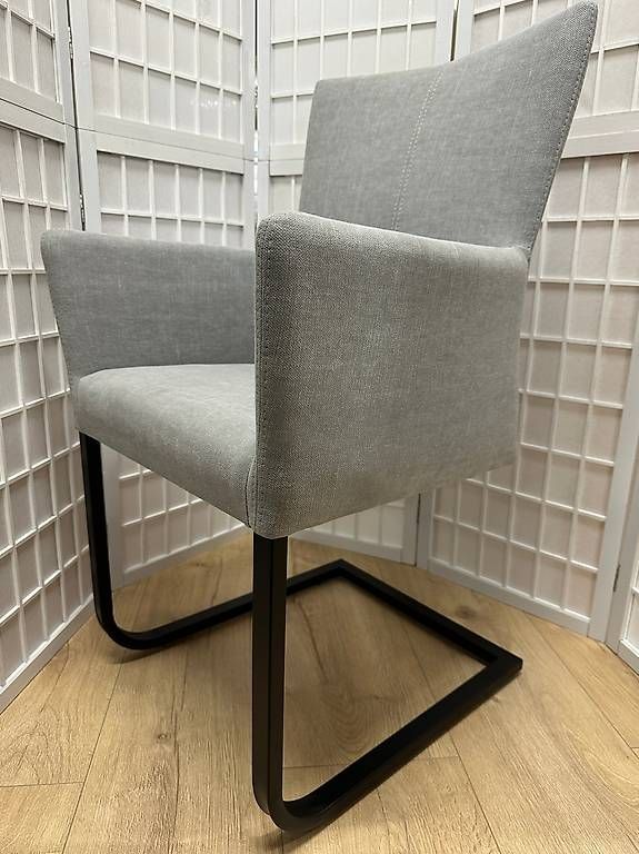 8 Freischwingerstühle mit Armlehnen «Roma Choice» Stoff grau, Metall schwarz lackiert. Bequemer und morderner Stuhl, passend zu den aktuellen Tischmodellen. Katalogpreis CHF 599.-/Stk.