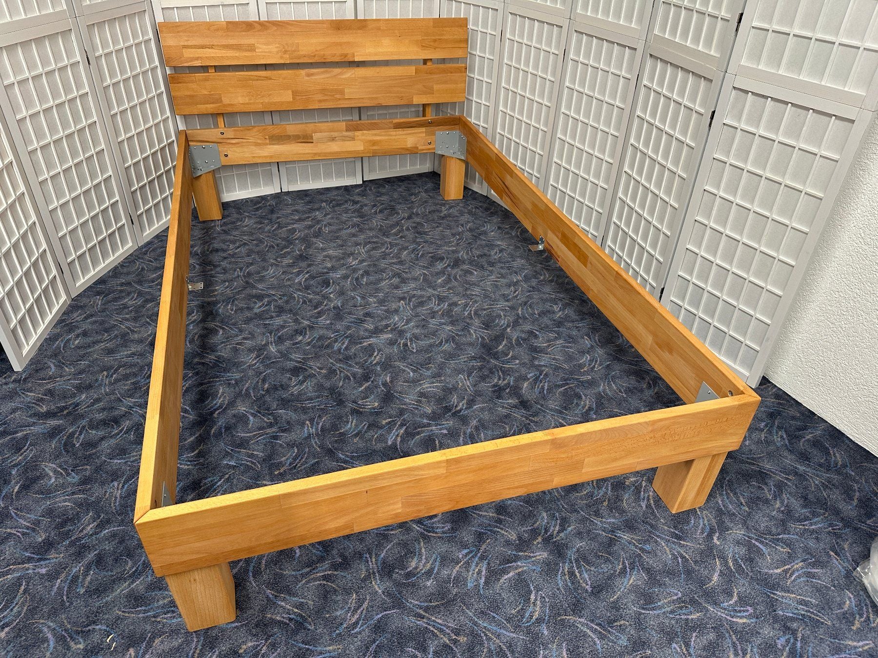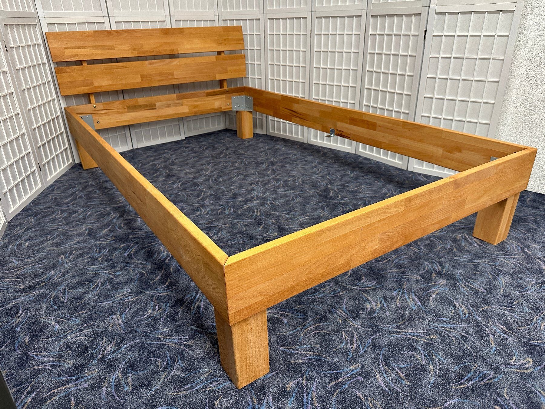 Bettrahmen «Paolo» mit Kopfteil, Buche natur geölt, Fusshöhe bequeme 21 cm = Oberkante Bettrahmen 37 cm.