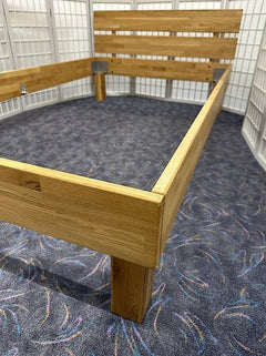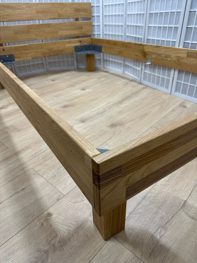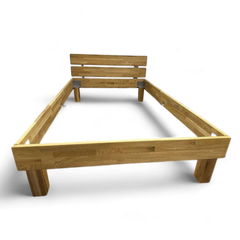 Bettrahmen «Sandro» mit Kopfteil, Wildeiche massiv natur geölt. Oberkante Bettrahmen 39 cm, Höhe Kopfteil 76 cm. Einlegetiefe 13 cm.