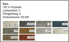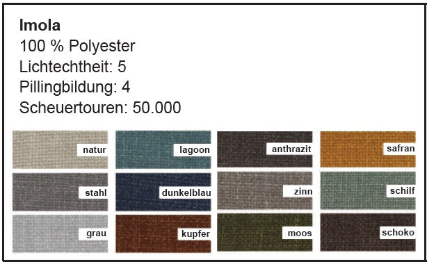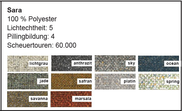 Das Sofa ist auch noch in anderen Stofffarben bestellbar (Lieferfrist ca. 8-12 Wochen). Bitte geben Sie bei der Bestellung im Notiz-Feld die gewünschte Farbe an.