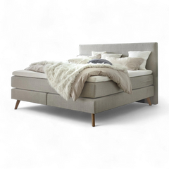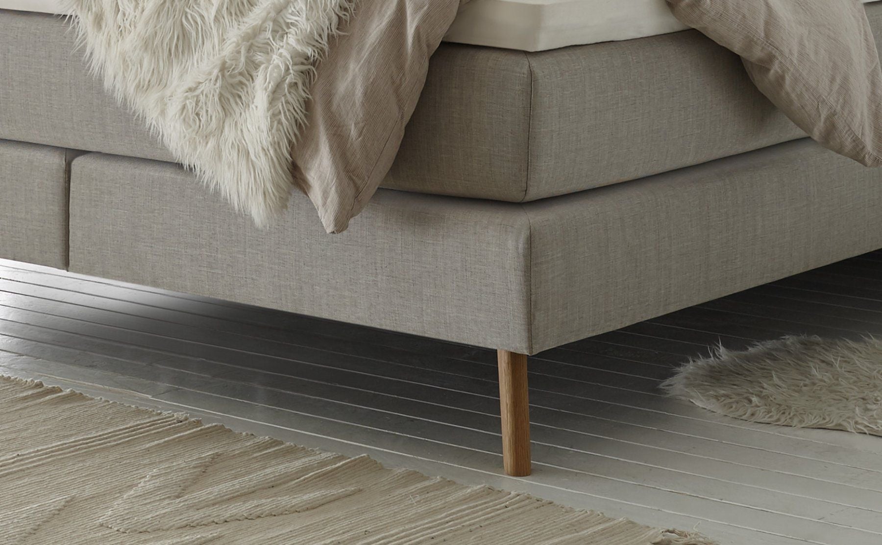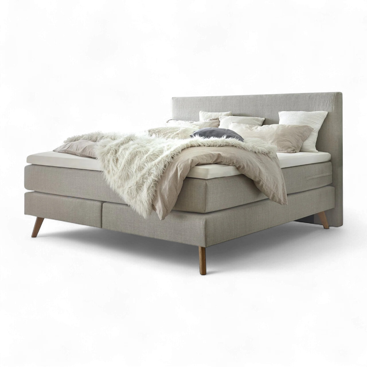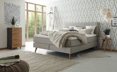 Hasena Boxspringbett «Costa» Stoff Pepe grey, Füsse Eiche bianco.
