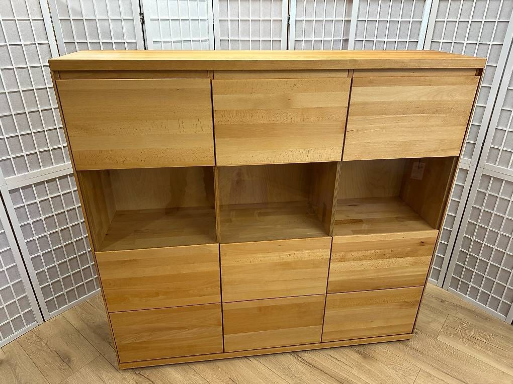 Highboard «Flair» Kernbuche massiv geölt, 3 Türen.