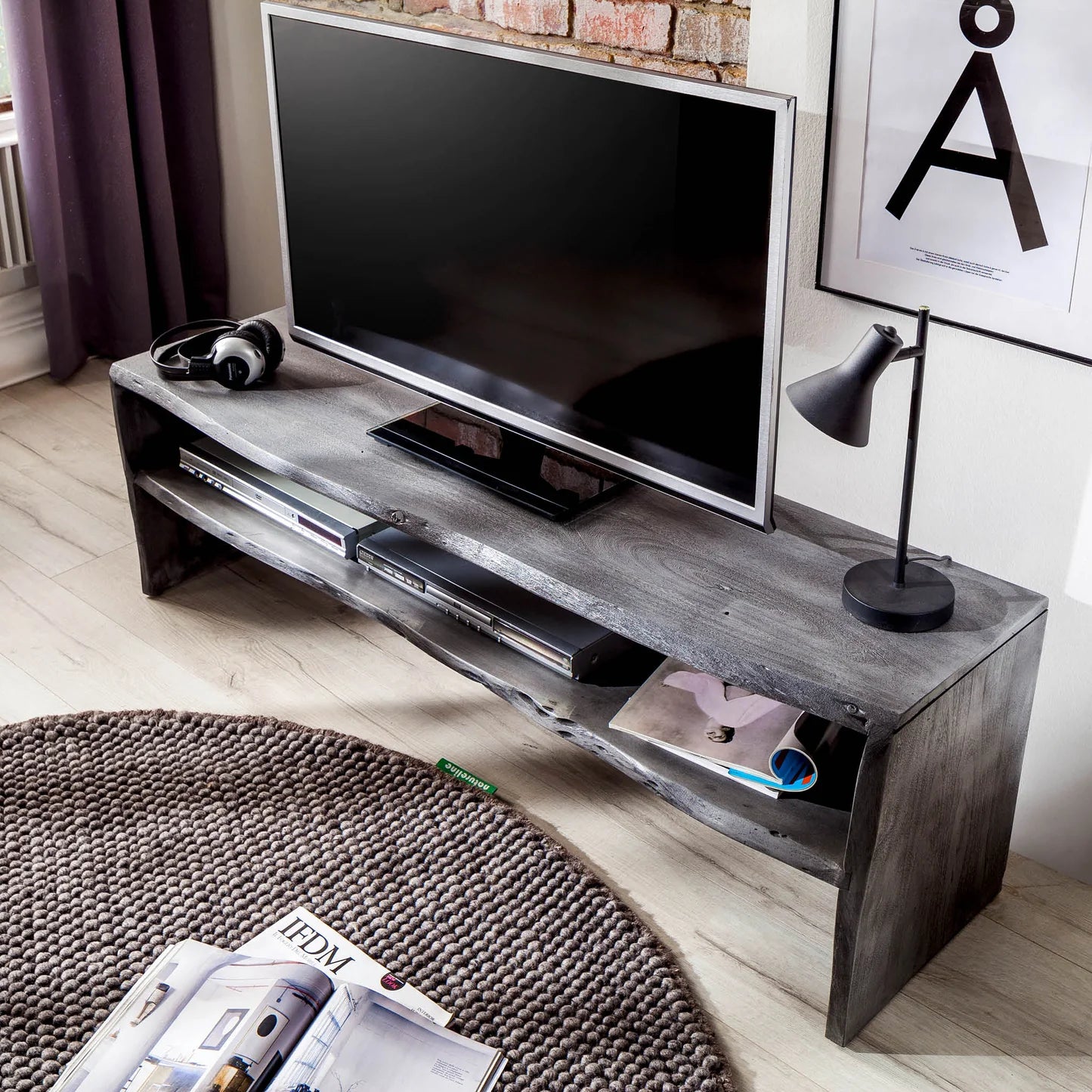 Lowboard BIRAMI Akazie massiv grau