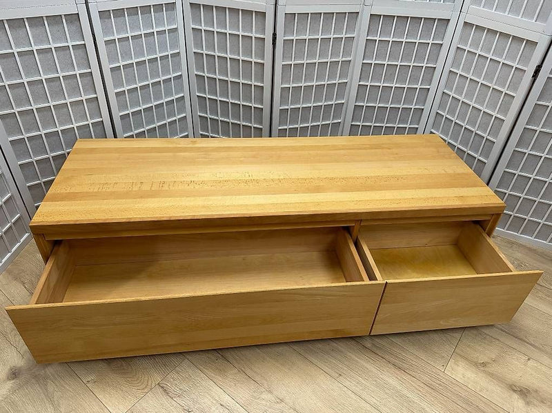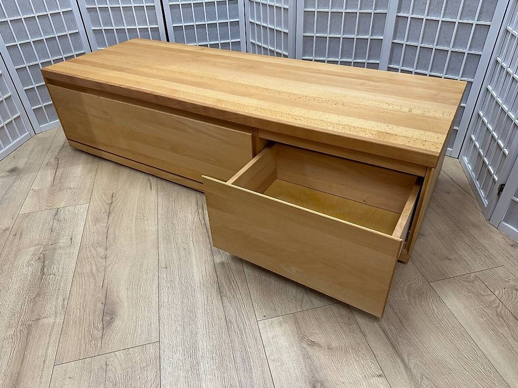 Lowboard Schuhbank «Flair» Kernbuche massiv geölt. Mit 2 Schubladen.
