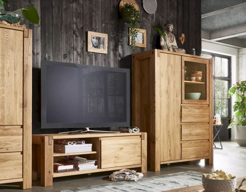 Lowboard «Woodstock» in schwerer Balkenbauweise und praktischer Einteilung.