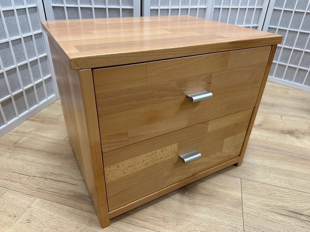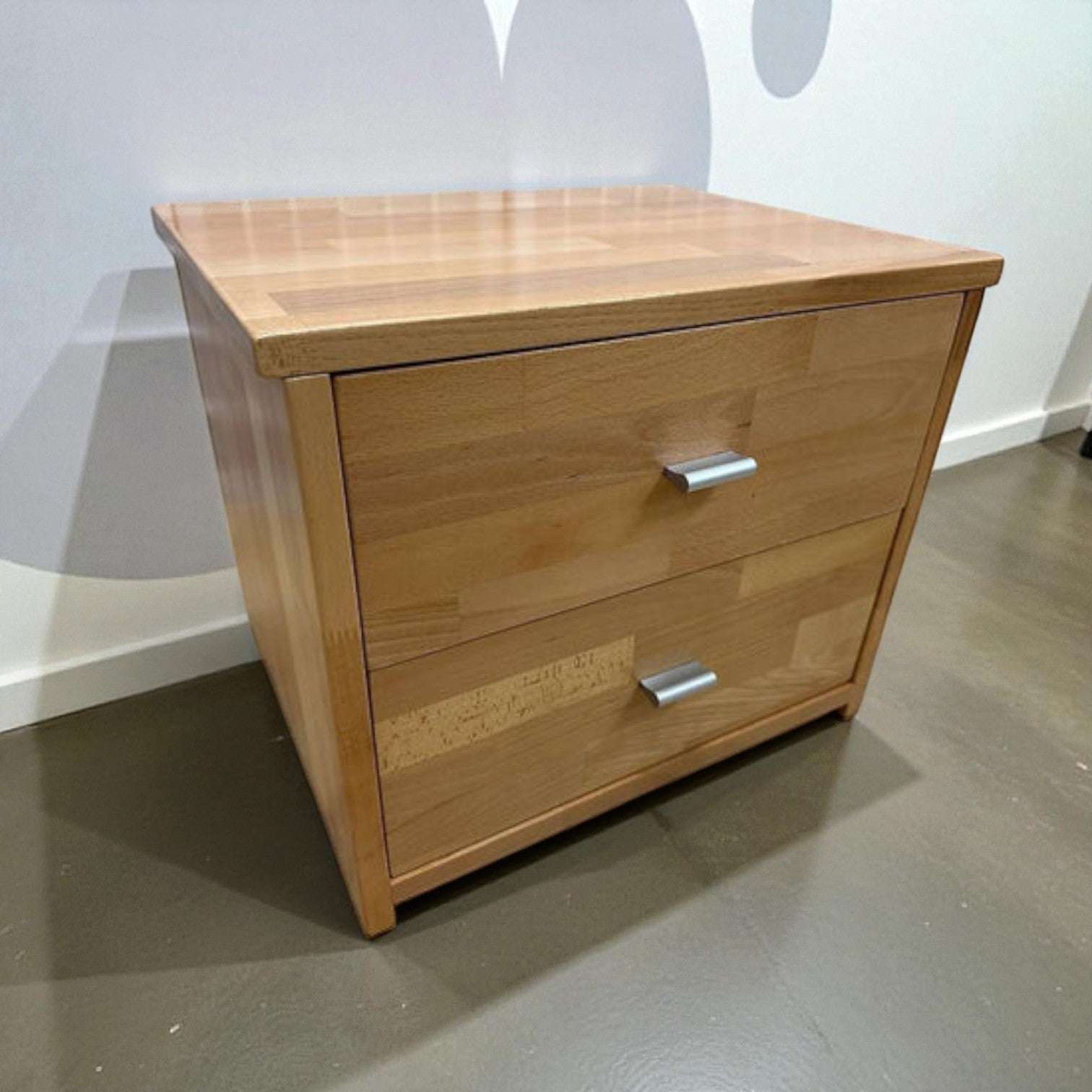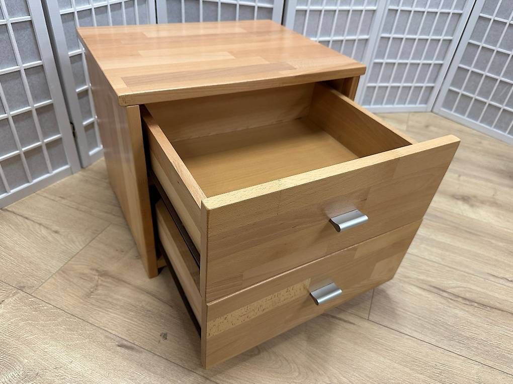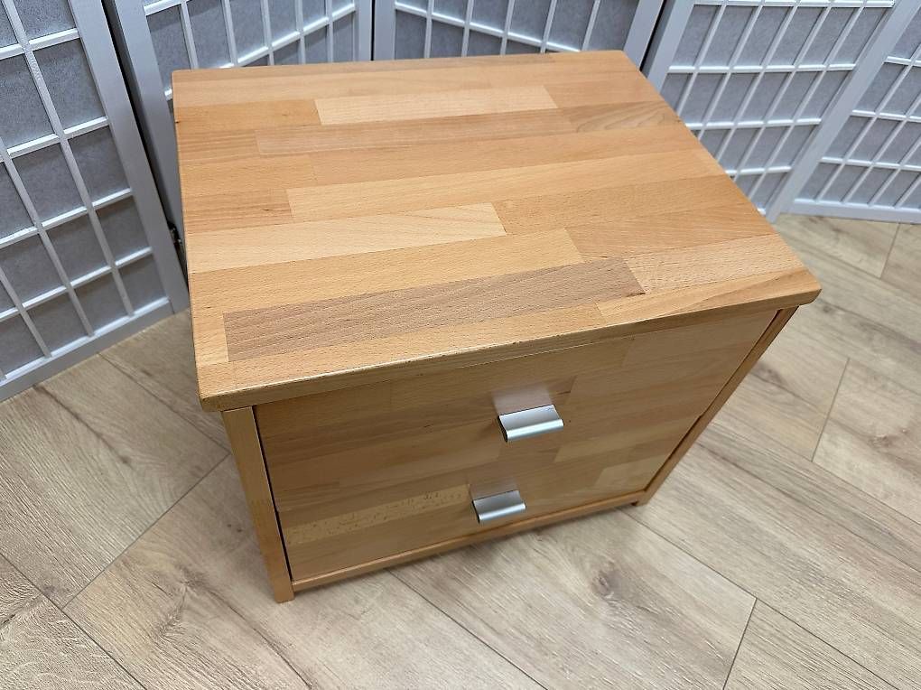 Nachttisch «Alfa» Buche teilmassiv lackiert. 2 Schubladen.