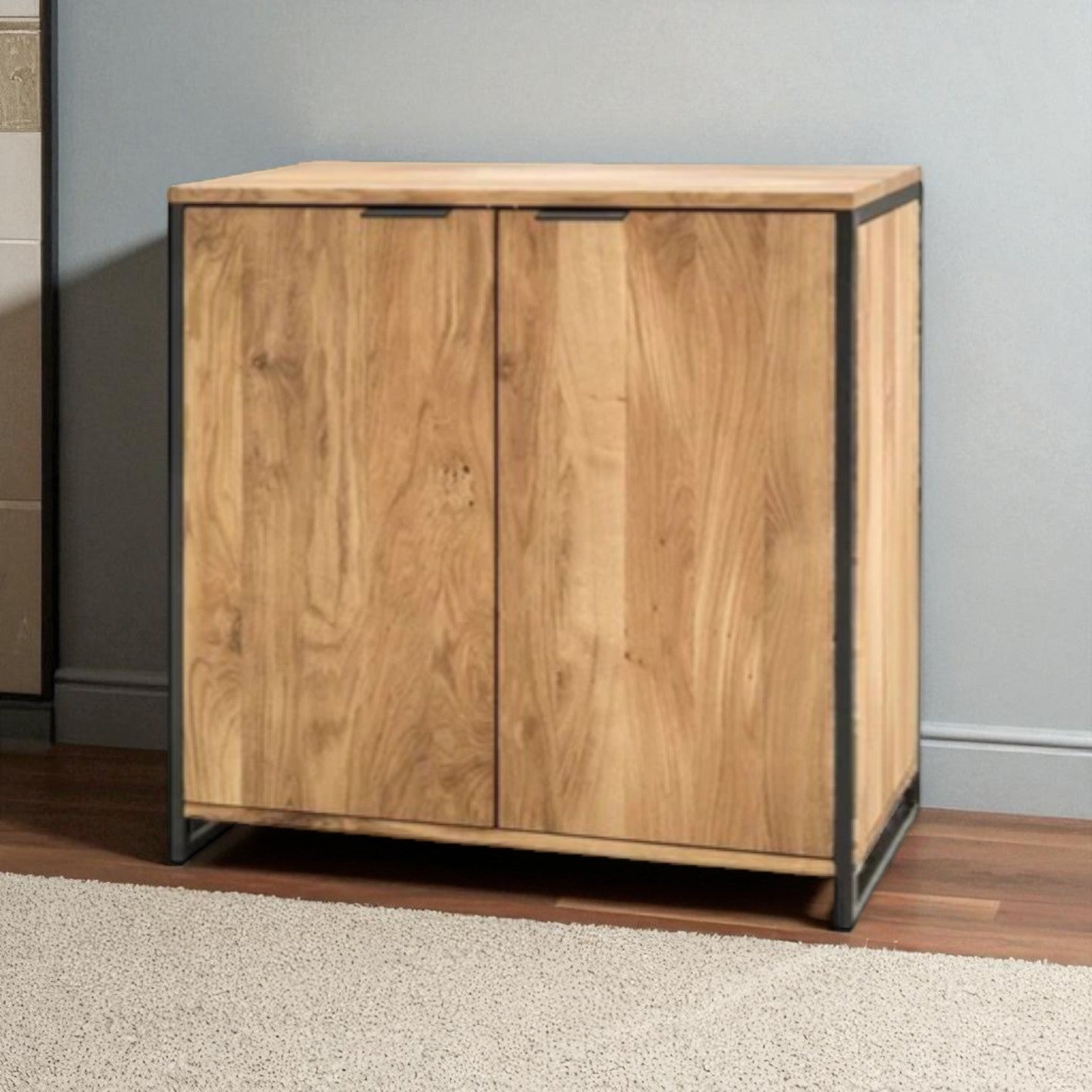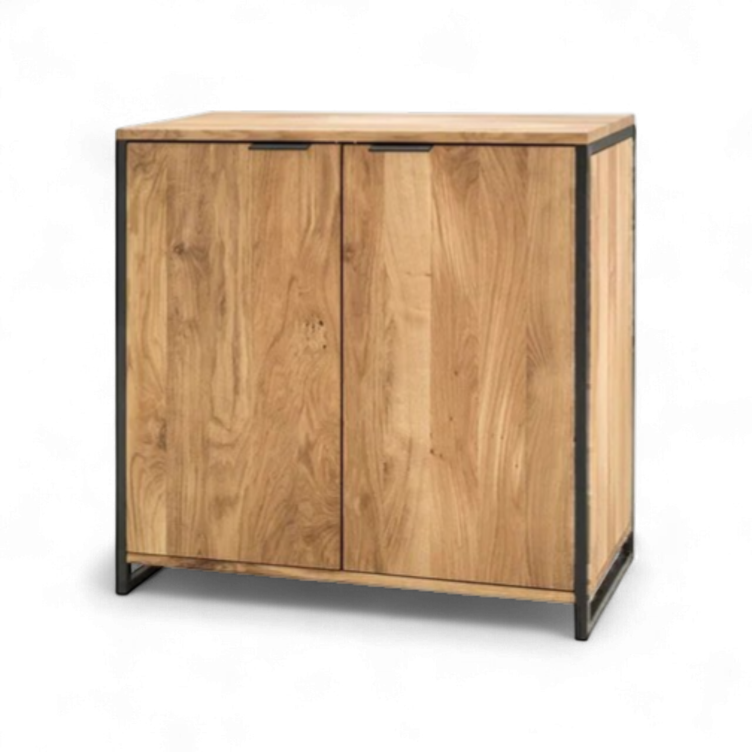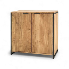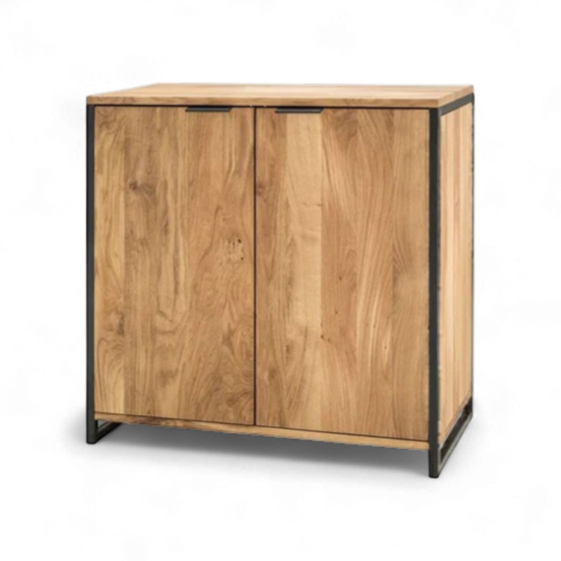 Kommode «Lissabon» Wildeiche massiv geölt, Schwarzstahl. Mit 2 Türen.
