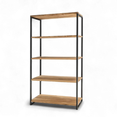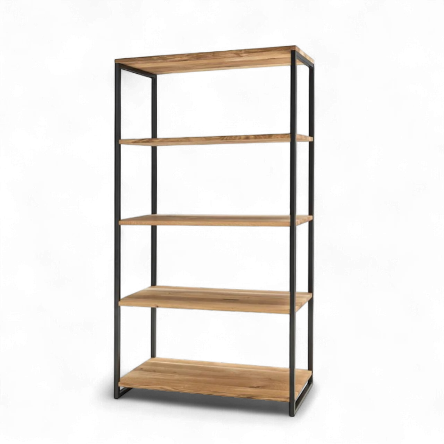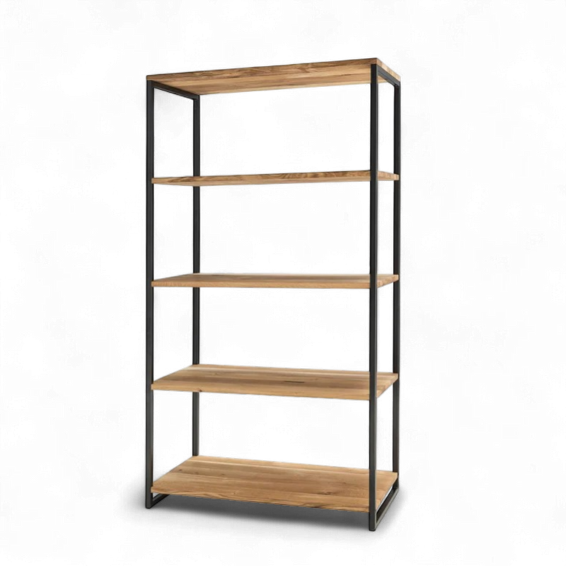 Regal «Lissabon» Wildeiche massiv geölt, Schwarzstahl. Mit 5 Regalböden.