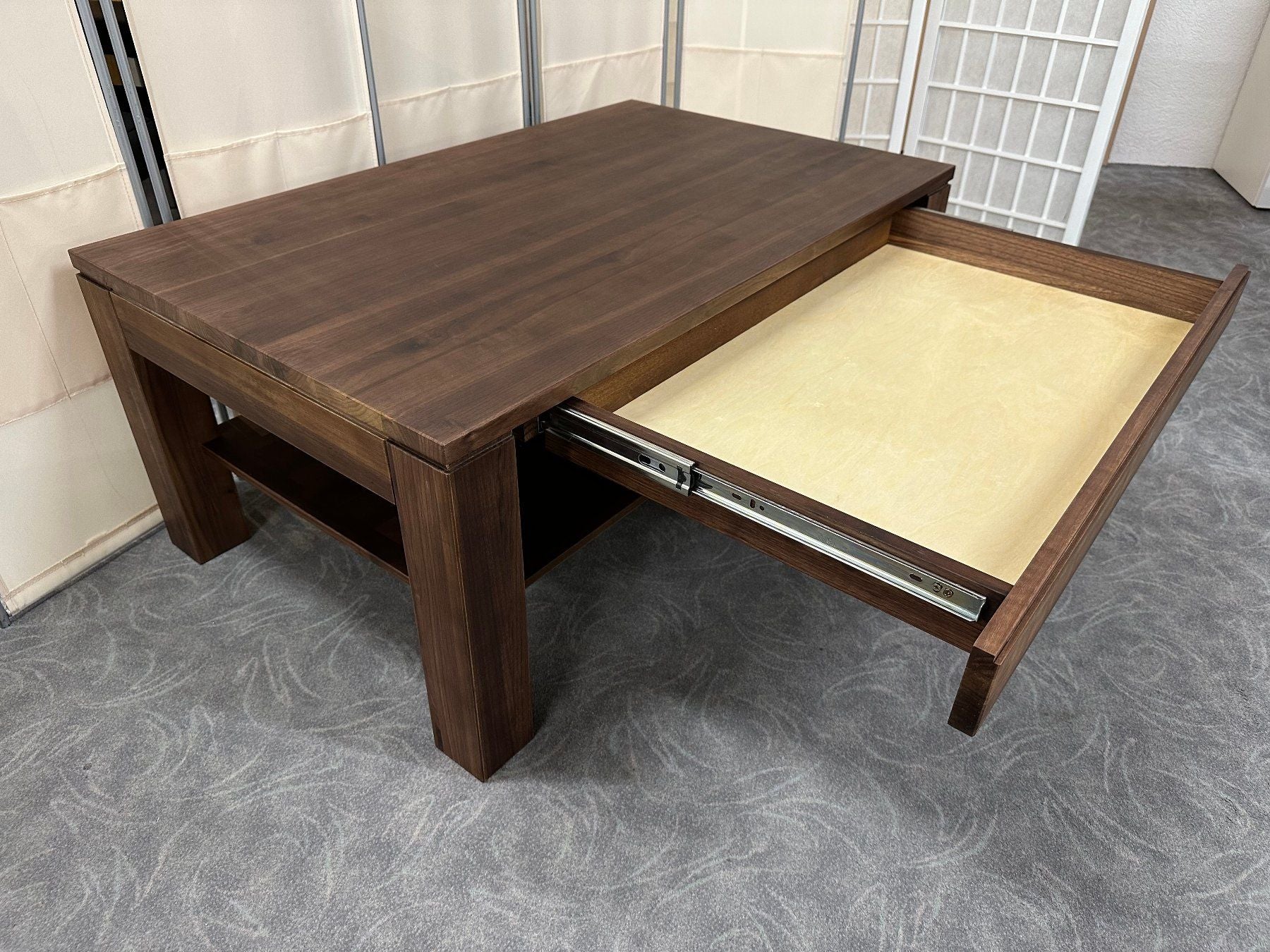 Salontisch «Björn», Nussbaum vollmassiv, geölt. Mit praktischer Schublade (Vollauszug).