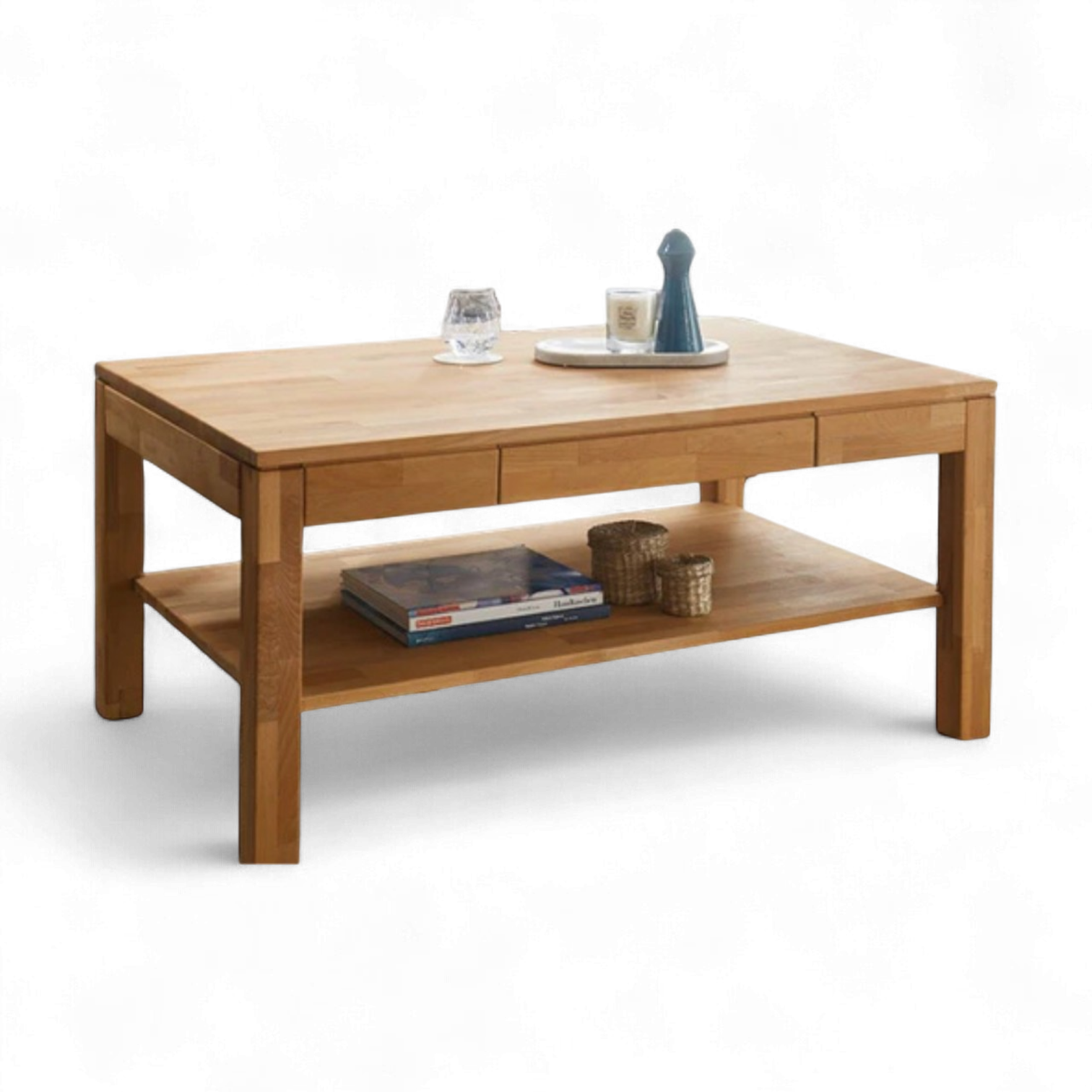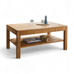 Salontisch «Salem», Kernbuche oder Wildeiche vollmassiv, geölt, keilverzinkt. Mit praktischer Schublade und Ablage.