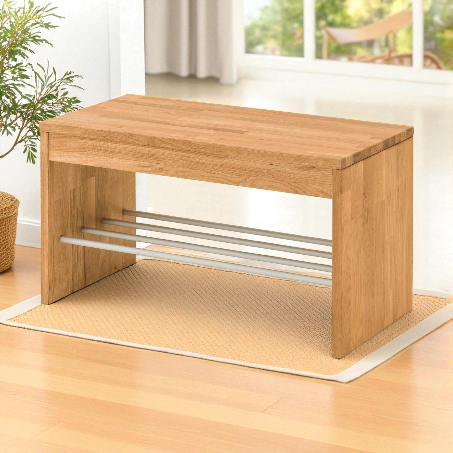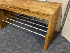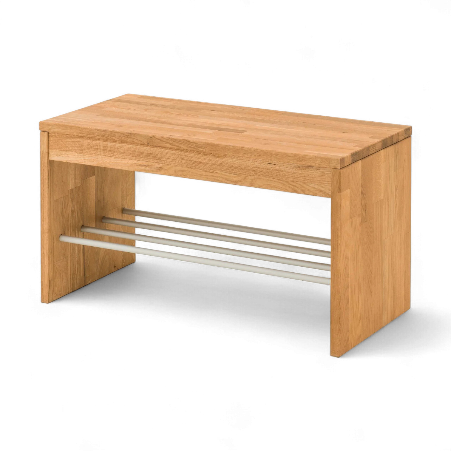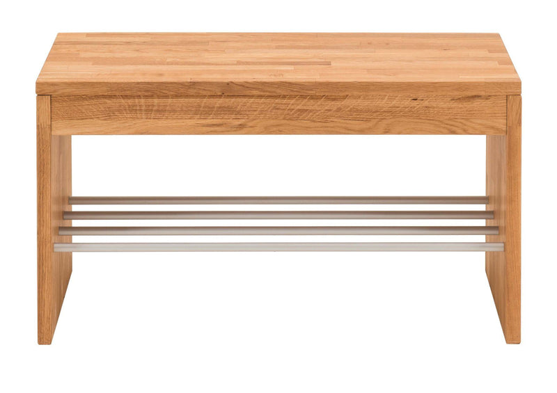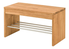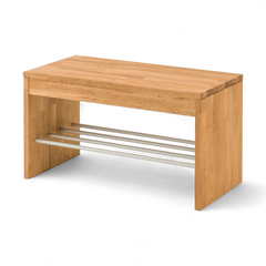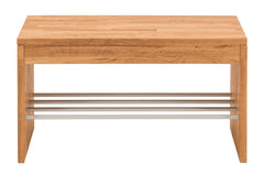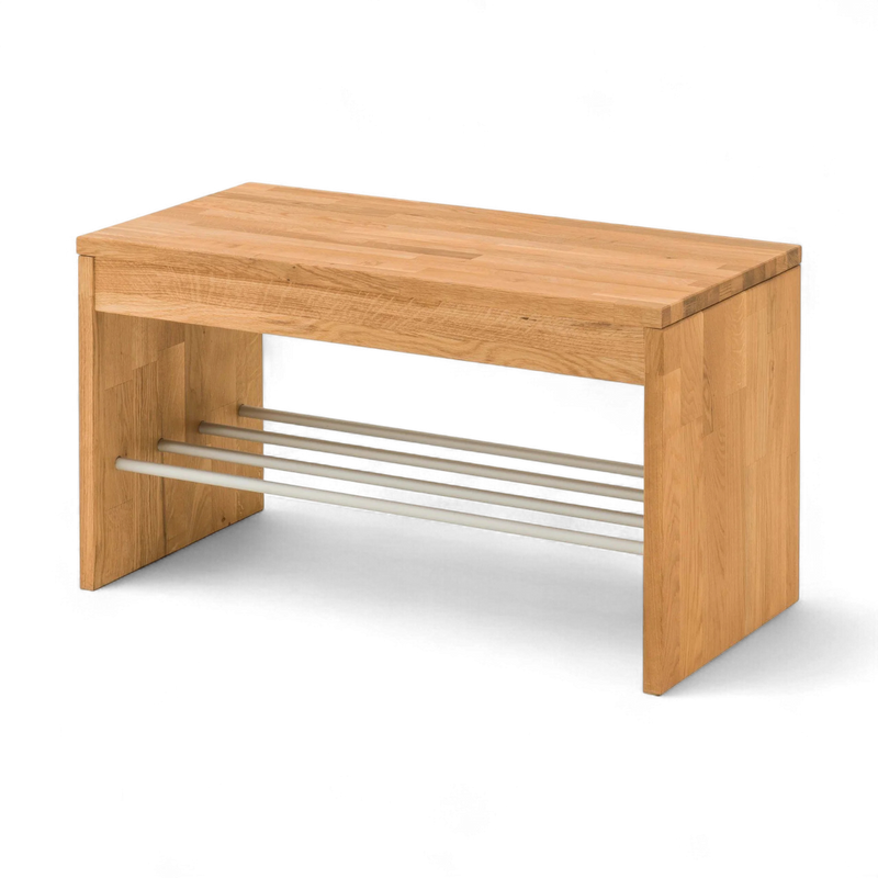 Sitzbank «Comma» Wildeiche massiv geölt, Ablage Metall verchromt.