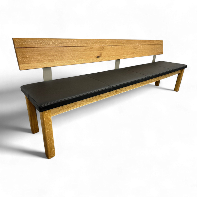 Sitzbank TREVA Asteiche Wildeiche massiv, Lederpolster