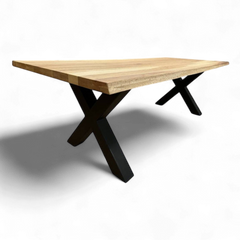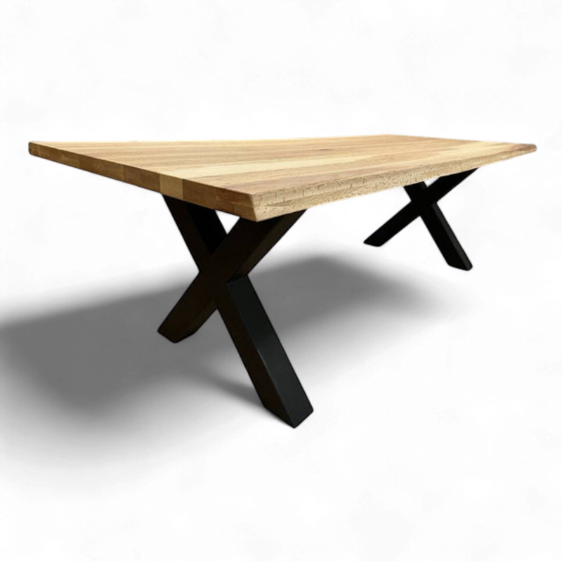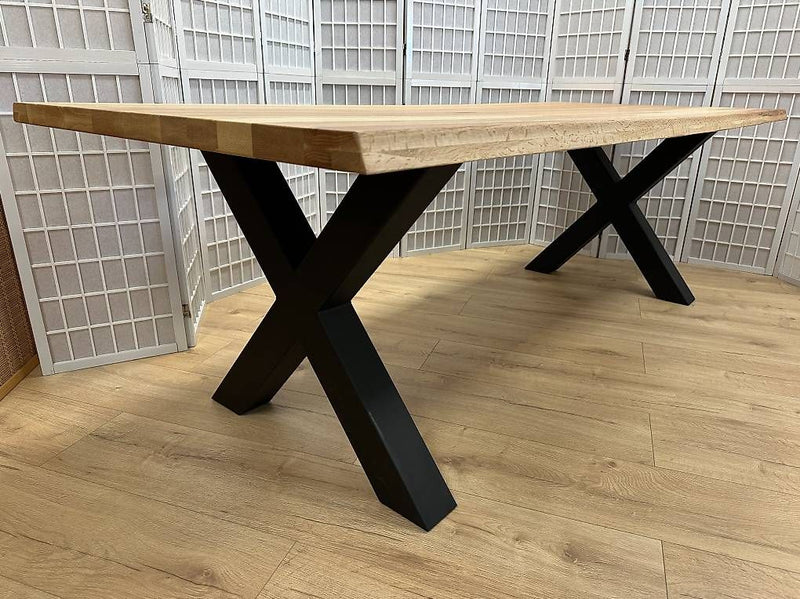 X-Füsse Metall schwarz pulverbeschichtet. Jeder Tisch ist ein Unikat.